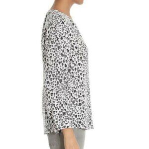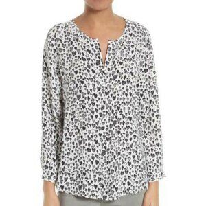 Joie Silk Blouse Womens White V Neck Long Sleeve Black Purine Hearts Long Sleeve