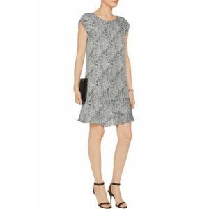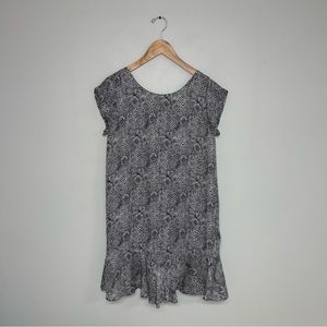 Joie Silk Dress Women's Size Small Grey White Snake Print Ruffled Crepe "Nella"
