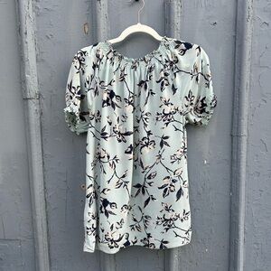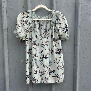 Joie Silk Floral Masha Blouse. Tassel tie front, silk composition with floral print, smocked puff sleeve.
