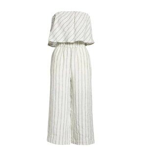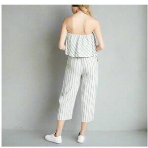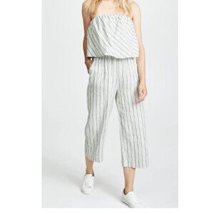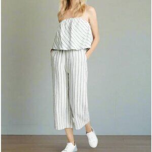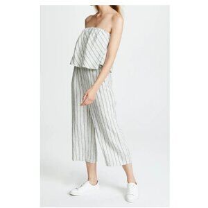 Joie Strapless Wide Leg Crop Romper Womens Small Linen Striped Brogan Jumpsuit