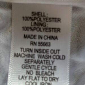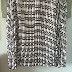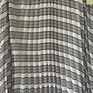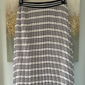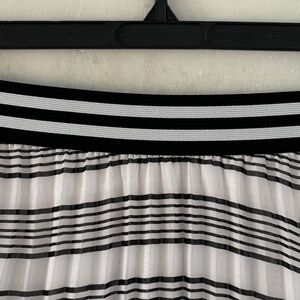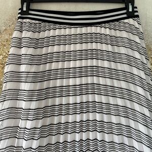 Size: Large. Color: Black and white. 100% polyester. Elasticized waist. Pleated. Fully lined. Horizontal stripe print.