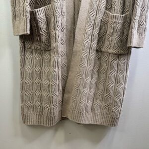 Joie Tan Long Sleeve Cable Knit Long Cardigan Open Front Sweater Size Large