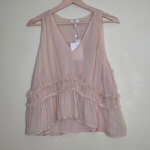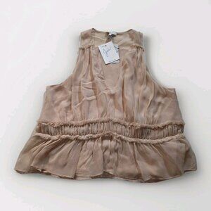 Joie Top Women M Beige V Neck Sleevless Silk Lined Babydoll Party Office Wedding