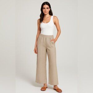 Joie Wide-Leg Linen Blend Pants - Beige Stripe (US L)