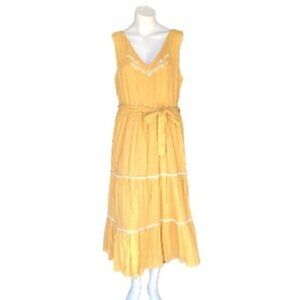 Joie Yellow Romantic Bohemian Flowy Tiered Embroidered Vacation Maxi Dress 12