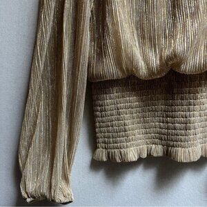 Joie shimmer gold mock neck long sleeve blouse Sz M