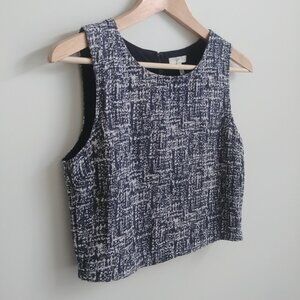 Joie structured tweed cotton blend shell top blouse black and white Small
