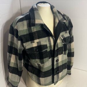 Joie Plaid Cropped Utility Jacket in Black and Green