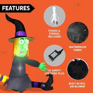 4 Feet tall crashing witch into tree inflatable comes with extended cords, stakes, fastened ropes, built-in sandbags, and a plug with UL certification. Customers can tie the funny Halloween inflatable decoration on a tree or a pillar.