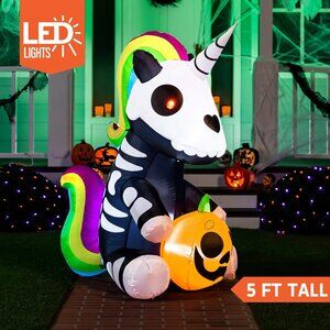 Joiedomi 5 FT Halloween Inflatables Skeleton Decor Outdoor Skeleton Unicorn