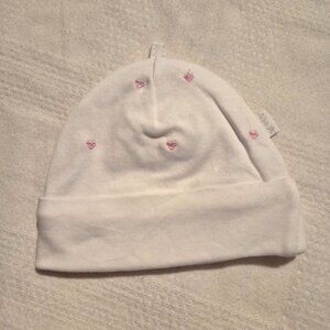 Jojo Maman Bébé girls size newborn white hat with embroidered hearts EUC