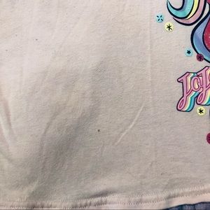 JoJo Siwa dress by Nickelodeon for a look that's so delicate and full of charm. Short sleeved dress features pink jersey bodice with multi color unicorn and pink bow.
