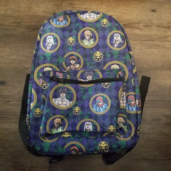 Jojo's Bizarre Adventure Backpack with front zippered pocket and inner padded tablet/laptop pocket.