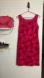 It doesn’t have any stretch, is fully lined, wrinkle free fabric and can be washed at home. The fabric is in hues of pink and raspberry.