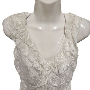 Jolibel Sleeveless White Lace Top with Ruffles Size M