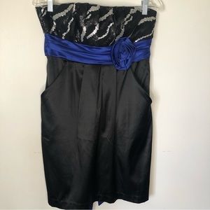 Jolie Vtg Strapless Cocktail Dress Size 8P Sequins and 3D Rosette.