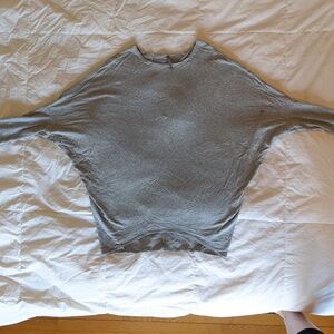 Be comfy in this long sleeves pullover dolman top. Rounded high low hem. Can be wear off shoulder.