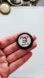 25mm (approx 1”), glass dome cabochon, with a skull wearing a Xmas hat graphic with text “Jolly AF”, secured on a black, bezel brooch base.