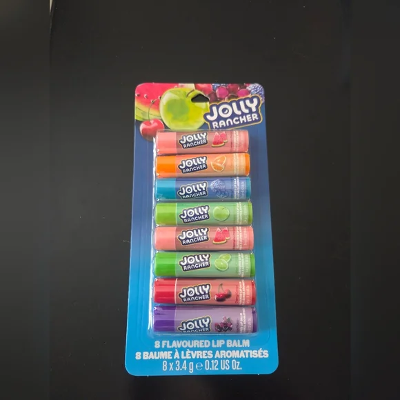 Set of 8 Jolly Rancher flavored lip balms. Vibrant colors and fruity flavors. Brand new.