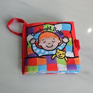 Set of three colorful soft baby books. Features playful animal and bedtime themes. Perfect for early learning and play.