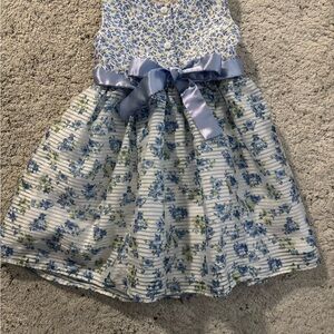 Jona Michelle Cream and Blue Floral Sleeveless Dress with Bow Size 3