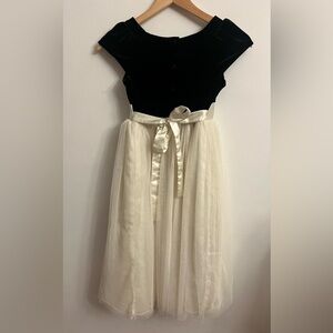 Beautiful Jona Michelle Holiday Black Velvet Dress with Tulle and Crinoline. Cream satin ribbon sash.