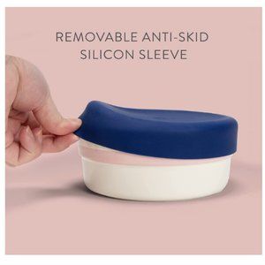 Ceramic feeding bowl with a removable anti-skid silicon sleeve to hold your pet's bowl in place doubles as a lid