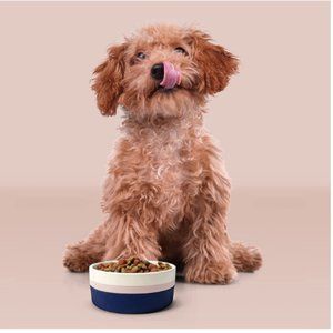The Miami Anti-Skid Ceramic Dog Bowl from Now House by Jonathan Adler for Pets is a chic way to feed your pets. This dog food bowl features a unique silicone sleeve that doubles as a lid for pets on-the-go. The ceramic feeding bowl comes in both single cup and 3-cup sizes. It includes a removable anti-skid silicone sleeve that can be used to either hold the dog food bowl in place while your dog eats or cover the top of the dog food bowl during transportation. This is a great dog food bowl for dry food, wet food, or water for your dog