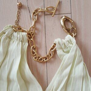 Chunky gold-tone halterneck chain with adjustable clip closure and front toggle accent