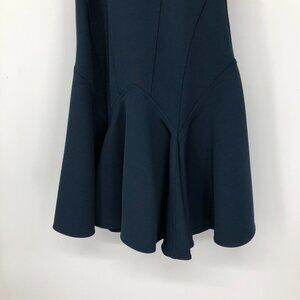 Jonathan Simkhai Navy Blue racerback structured Flared pleated midi dress