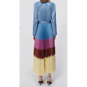 Jonathan Simkhai Sz 2 Dress Suzie Pleated Dip Dye Long Sleeve Midi Hydrangea New