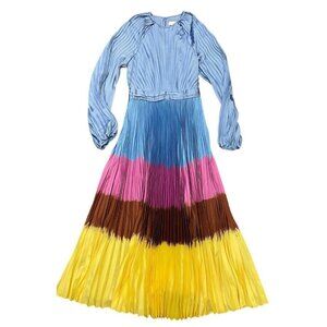 Jonathan Simkhai Sz 2 Dress Maxi Pleated Long Sleeve Midi Designer Luxury Preppy