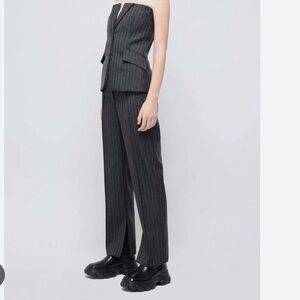 Jonathan Simkhai Sz 4 Vera Crop Pants Grey Pinstripe Menswear Inspired New