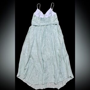 Jonathan Simkhai Sz L Dress Leighton Linen midi Sundress Summer Green Striped