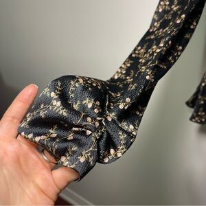 Jonathan Simkhai top, designer blouse, floral blouse, ruched blouse, sweetheart neckline top, peplum top, long sleeve blouse, romantic top, minimalist floral, women’s size small, luxury designer, dark cottage core, country, milkmaid