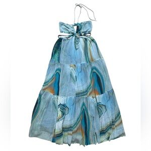 Jonathan Simkhai sz L Dress Shailene Laurel Laguna marble blue Halter maxi New