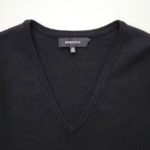 Jones & Co. Women's Black 100% Merino V Neck Pullover Sweater Size Medium