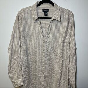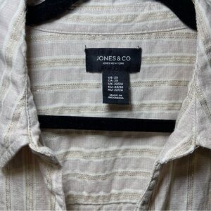 Jones & Co Women's cream metallic button down long sleeve linen blend top in 2X