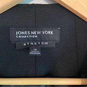 Elevate your wardrobe with this sleek black blazer from Jones New York, perfect for both professional and casual settings. Crafted with precision, this blazer offers a timeless silhouette that complements any outfit. Its versatile design ensures you stay stylish and comfortable throughout the day.
