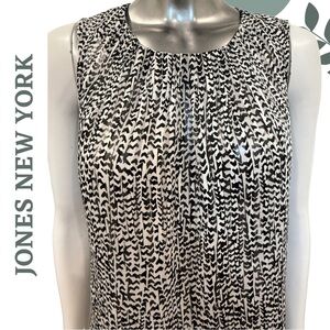 Jones New York Black White Abstract Print Sleeveless Top | Monochrome | Size 8