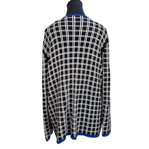 Jones New York Black and White Plaid Cardigan with Blue Trim Size 1X
