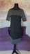 This chic gray and black sheath dress features a modern bateau neckline and short sleeves, perfect for both work and casual occasions. The structured fabric and minimalist design offer a contemporary look, while the mini length adds a touch of elegance.