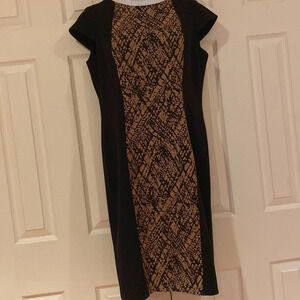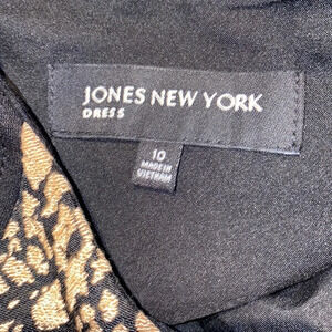 Jones New York Black tan Middle print stretch Jersey knit Midi dress Sz 10