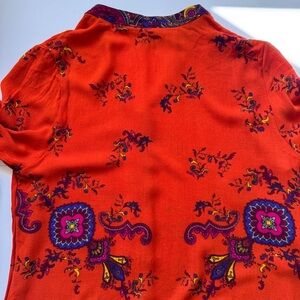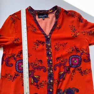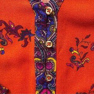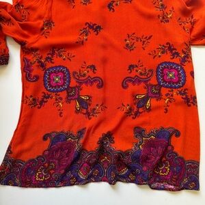 Jones New York Blouse Gold Buttons Paisley Tunic Moroccan Orange Top Shirt Sz L