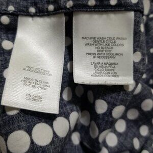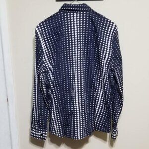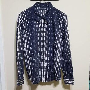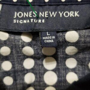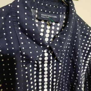 Jones New York Blouse Navy White Shirt Polka Dots Large Modern Office