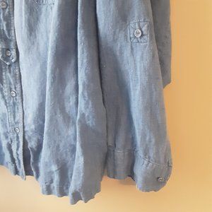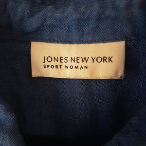 Jones New York Blue 100% Linen Button Up Collared Shirt
