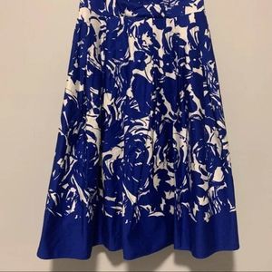 Jones New York Blue White Abstract Floral Print Midi Knit Pull Over Dress Size 8