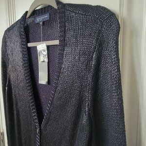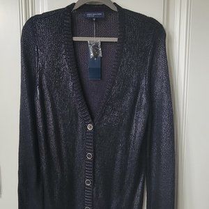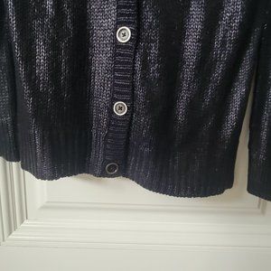 Jones New York, NWT, Size L, button front navy cardigan with sheen to it per pics, has small slit at hemline. Gorgeous sweater that can be easily dressed up!!