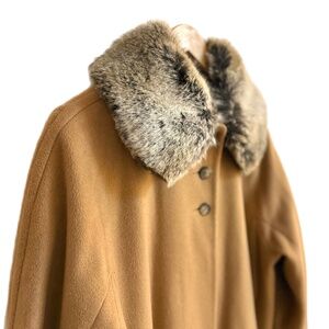 Jones New York Camel Wool Angora Coat w Removable Faux Fur Collar – Canada Made