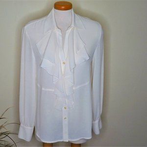 Jones New York Collection Sheer Ruffled Long Sleeve Blouse